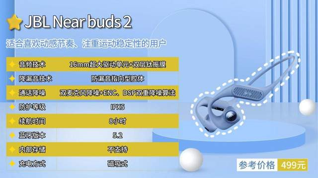 总结:JBLNearbuds2以强劲低音、稳固佩戴与实用防护为核心竞争力,精准适配运动场景。整体表现符合其定位,特别适合喜欢动感节奏、注重运动稳定性的用户。