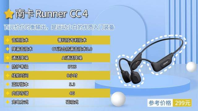 总结:南卡RunnerCC4以其均衡的性能表现和极具竞争力的价格,重新定义了百元级骨传导耳机的价值标准。对于追求实用性与性价比的用户而言,这是一款值得信赖的优质选择。